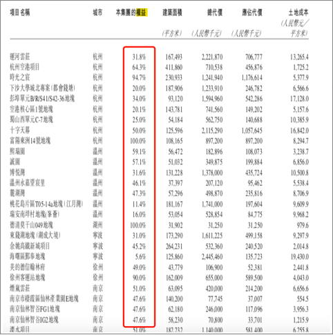 2019年新增的38宗土地合计货值超700亿元,不过“硬伤”仍在,依旧是联营项目居多,并且公司的权益比例较低。资料显示,38个项目中,公司的权益比例100%的仅两个,在50%以下的项目有26个,最小的权益占比仅5.6%。