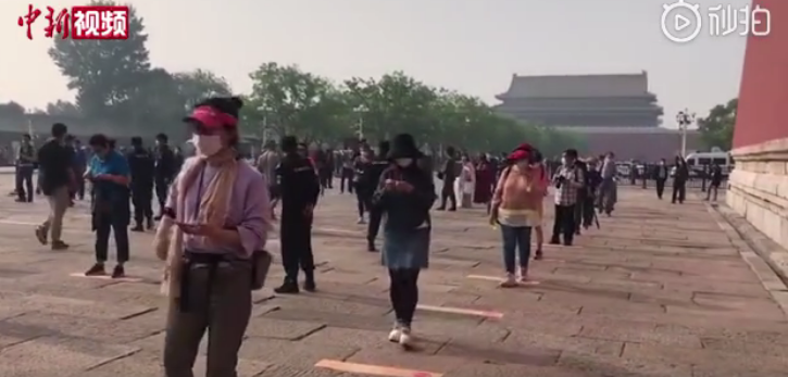 5月1日,故宫恢复开放,等候的游客一早便排起了长队。