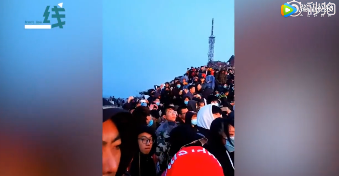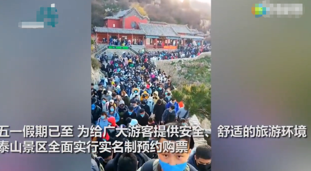 1日上午一段视频在社交网络热传,视频显示,在泰山风景区,五一为看日出游客排队等候登泰山,景区现场开启“人从众”模式,现场拥挤不堪。