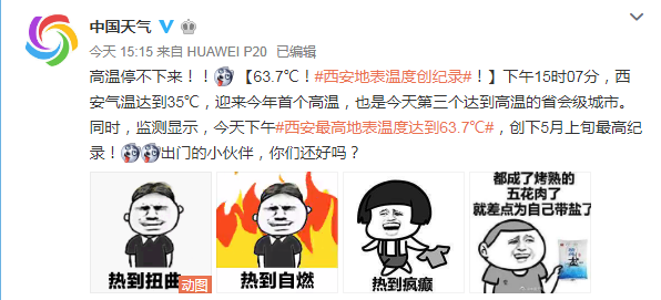 几乎就在同时,西安也升至35.0℃,拿下当地今年首个高温,比常年平均5月31日提前了30天。