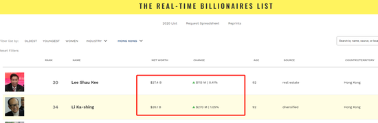 目前,李兆基个人身家274亿美元,为香港第一富豪,中国第三大富豪,仅此于“双马”;李嘉诚个人身家261亿美元,香港第二大富豪,中国第四大富豪。黄峥为中国第五大富豪,许家印为中国第六大富豪。