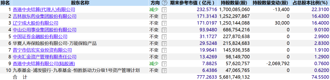 广发证券一季报显示,截至2020年3月31日,吉林敖东及其一致行动人、辽宁成大及其一致行动人、中山公用及其一致行动人持有公司A股和H股占公司总股本的比例分别为17.45%、16.42%、10.34%。