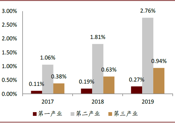 图表: 2017-2019年我国工业互联网在三大产业中的渗透