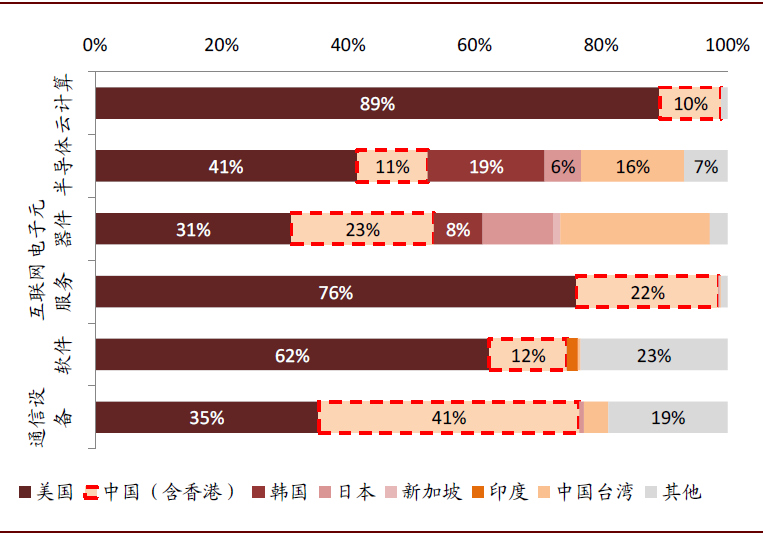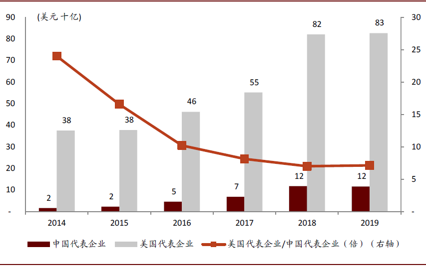 注:中国代表企业包括阿里巴巴、腾讯、百度、金山云;美国代表企业包括Amazon, Microsoft, IBM, Google, Apple, Facebook