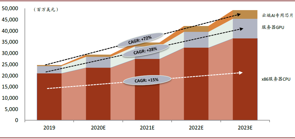 图表: 全球服务器和数据中心对处理器芯片的需求预测