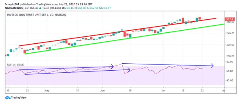 但最近,图标显示,这支ETF又沿着一条比之前更高的新路径增长。即使纳斯达克100指数突破260美元,也可能会回落至250美元左右的支撑位。