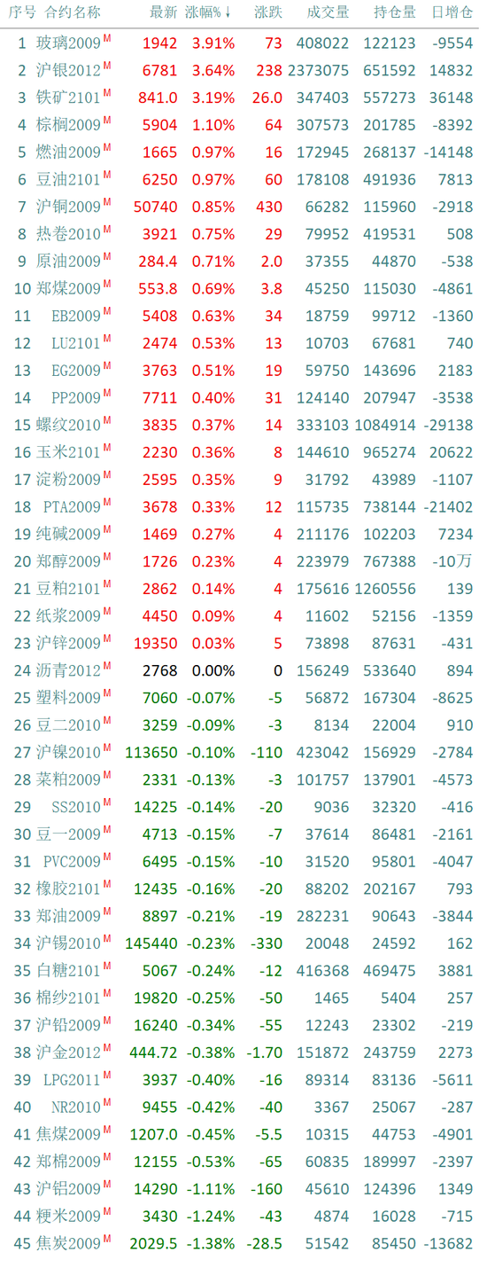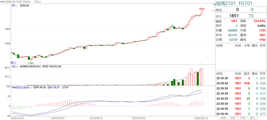 昨晚夜盘,玻璃多个合约触及涨停,主力01合约开盘强势拉涨,涨幅4.05%,涨停封板于1851元/吨,创出上市以来新高。