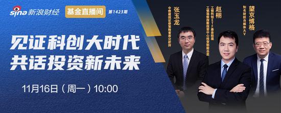 11月16日(周一)10:00工银瑞信指数投资中心投资部副总监、工银科创ETF基金经理赵栩,中信建投证券策略首席分析师张玉龙,知名财经自媒体大V望京博格,直播分享主题:见证科创大时代 共话投资新未来。