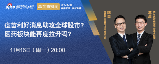 11月16日20:00陈奥(博时基金首席市场策略分析师)、葛晨(博时医疗保健混合基金经理)“ 直播分享主题:疫苗利好消息助攻全球股市?医药板块能再度拉升吗?