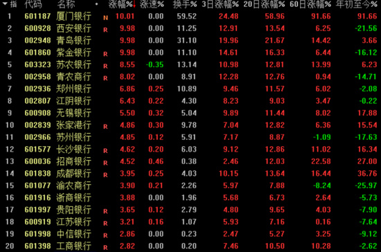 财联社(上海,研究员 周辰)讯,经过了昨日冲高后大幅回落的惨淡,金融板块今日没有令人失望,“金融三驾马车”携手上涨,此前在大金融中表现相对滞后的证券板块今日一马当先处于领涨位置,国盛金控(维权)超预期走出5天4板,强势逼人,华创阳安助攻涨停。保险板块也不甘落后,1.7万市值的“巨无霸”中国平安长阳后逼近昨日创出的历史新高。这轮金融板块中最先启动的银行板块,今日更是出现了4只涨停个股,其中早盘就涨停了3只,早早确立了自己龙头老大的地位,与上周五和周一主涨工商银行等大象股不同的是,今日赚钱效应明显好了很多,股性更好弹性更佳的小市值银行占据了前排位置。