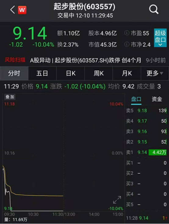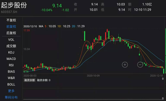 不过,自从王海质疑辛巴带货燕窝造假后,起步股份就开始下跌。12月10日,起步股份跌停,午盘报9.14元创阶段新低。从9月23日盘中创下的17.55元/股的高点后,两个月跌幅近50%。
