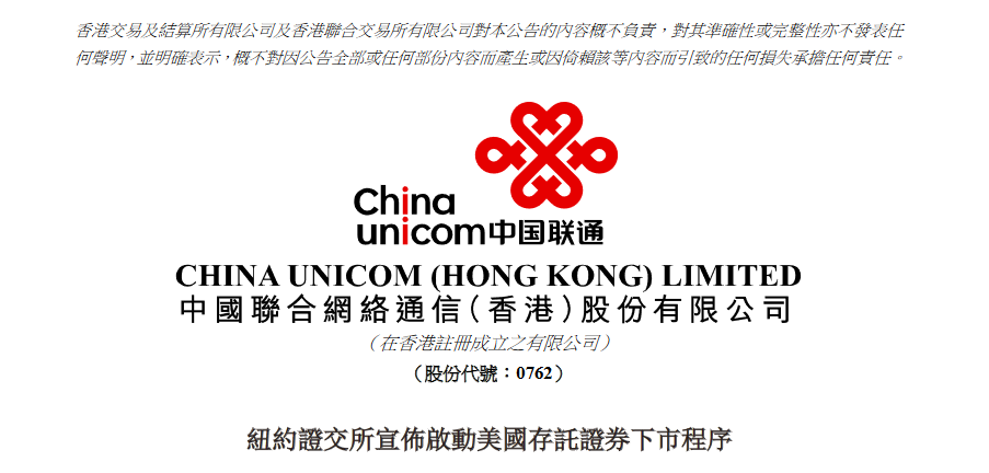 原标题:三大电信运营商齐发公告:尚未收到纽交所的摘牌通知