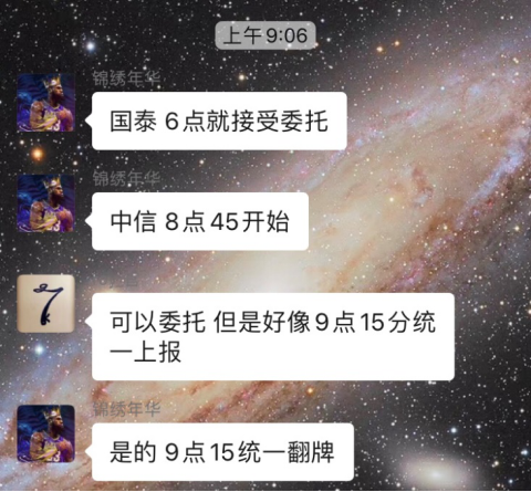据了解,投资者可以提前在券商系统下单,每家券商提前时间不同,上午9:15券商系统统一报进股转交易系统。
