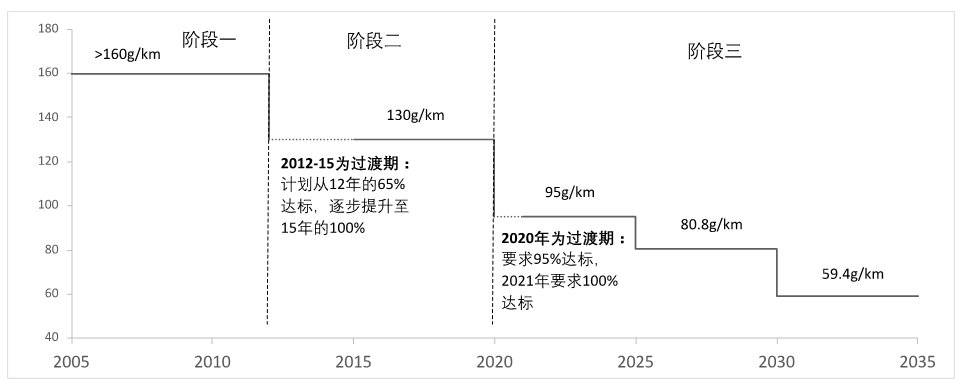 根据规定,2020年销售新车中的95%,碳排放必须达到95g/km(2019年欧盟平均实际碳排放是122g/km),超出部分每g需要缴纳罚金95欧元。