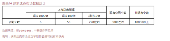 纳斯达克上市公司的首发PE大多数为负,但不影响纳斯达克板块的投资价值,纳斯达克指数过去10年涨幅超过5倍,也成就了一些累计涨幅超千倍的“大牛股”。所以,科创板公司的高PE可能不值得大惊小怪。但值得投资者关注的是成长初期的科技公司具有较高的“淘汰率”。