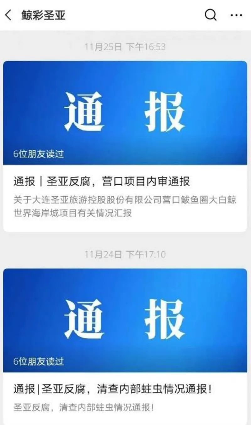 11月24日,该公众号进一步通报称,新任管理人员自2020年9月21日进入公司后,对之前的经营情况进行初步调查发现,大连圣亚原高管通过原商业部负责人,长期将27个商铺以极不合理低价承包给相关企业和个人。已向大连市公安局请求刑事立案侦查,并呼吁大连市相关部门尽快介入调查。