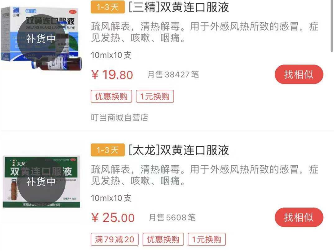 当天半夜12点多,张芳还在忙碌的时候,淘宝官方微博罕见地发送了两个字——“冷静”,配图就是当晚的爆款——双黄连口服液。记者查询发现,2月1日,双黄连口服液在淘宝平台、叮当快药、京东商城、阿里健康大药房几大平台上基本均已售罄。同时,记者从北京海淀区、朝阳区、通州区等几个药房也获悉,双黄连正缺货中。