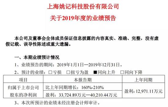 2月2日晚间,赶在鼠年开市前夜,姚记科技发布2019年业绩预告,预计去年实现归属净利润3.37亿元-4.02亿元,同比增长160%-210%。