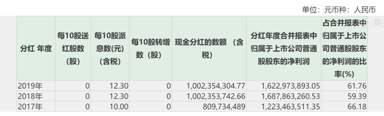 事实上济川药业已经连续三年保持了高比例现金分红,2017年-2019年当期分红总额占归母净利润的比例分别66.18%、59.39%、61.76%,三年累计现金分红约28.14亿元。最近三年以现金方式累计分配的利润占最近三年累计实现的年均可分配利润的比例高达95.26%。
