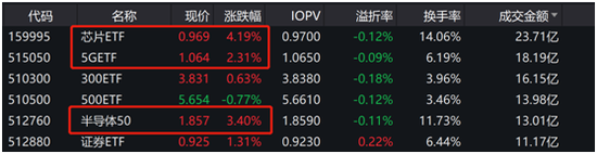 科技类ETF也成为吸金热门,其中半导体ETF、半导体50ETF、芯片ETF等多只ETF基金更是逆势飙涨,从此前跌超2%迅速切换到涨超4%,日内反弹超6%。