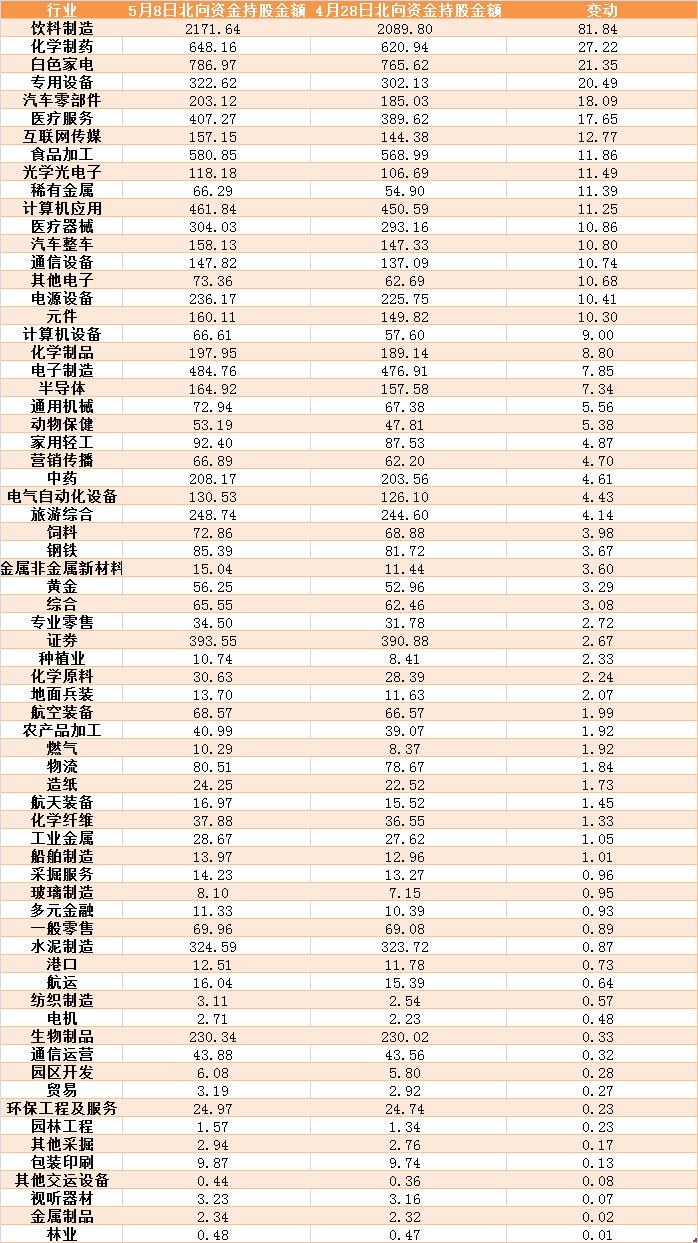 按申万二级行业标准,饮料制造、化学制药、白色家电持股北向资金持股金额相对节前增幅最大,分别达到81.84亿元、27.22亿元和21.35亿元。共有68个二级行业持股金额上升。