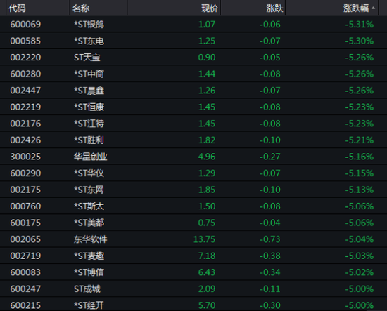 5月11日当天,ST板块掀起一股跌停潮,超20只ST股封上跌停板。