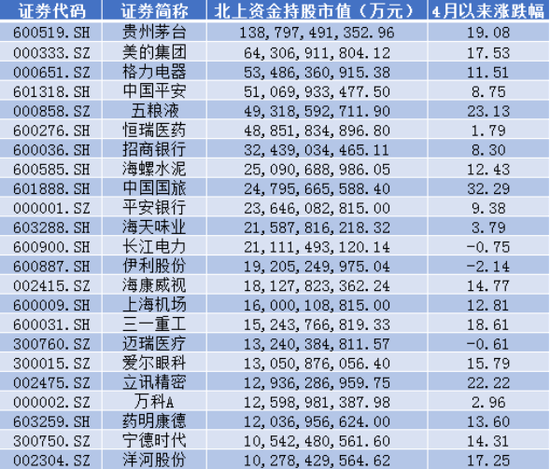 值得注意的是,从今年3月下旬开始,已经明确返场的北上资金始终不改抢筹优质资产的动作,“核心资产”筹码先后被买爆。