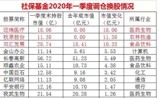 以社保基金为例,据基金君统计,从上市公司2020年一季报情况看,社保大举买入迈瑞医疗、牧原股份、永辉超市为代表的医药农业新零售股,买入资金规模较大。