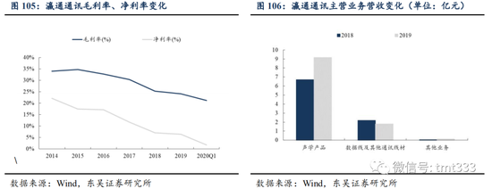 瀛通通讯 2020Q1 毛利率 21.25%,同比增长 1.15 个百分点。净利率 1.75%,同比下 降 0.75 个百分点。瀛通通讯主营业务可分为声学产品、数据线及其他通讯线材等。公司声学产品业务 2019 年营收 9.15 亿元,同比增长 36.36%。