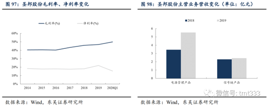 圣邦股份 2020Q1 毛利率 50.03%,同比增长 0.81 个百分点。净利率 15.49%,同比增长 1.34 个百分点。圣邦股份主营业务为电源管理产品和信号链产品等。公司的电源管理产品业务 2019 年营收达到 5.51 亿元,同比增长 60.17%。