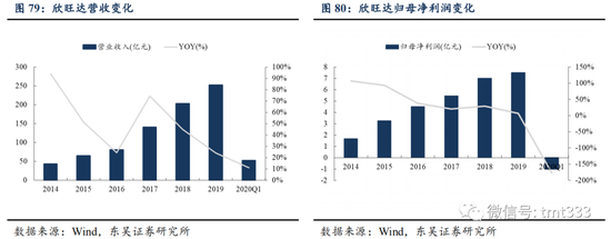 欣旺达 2020Q1 毛利率 13.64%,同比下降 1.73 个百分点。净利率-2.04%,同比下降4.91 个百分点。公司业务以消费电池模组起家,业务主要涉及锂电池产业链上中游业务,结合客户资源与研发优势,不断向产业链上下游延伸,渗透进入动力模组,储能系统、BMS等领域。锂电池模组业务是公司的主要盈利业务,连续多年在总营收中占比超过85%,2018 年实现 203.38 亿元收入。