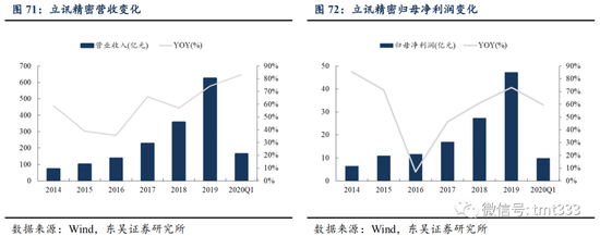 公司通过入主美特进入声学领域,A 客户份额领先。2016 年公司通过入股取得苏州美特 51%股权,后来又获得美律电子(上海)及美律电子 (惠州) 控股权。借助美律在声学器件领域的积累,公司 2017 年开始为 AirPods 提供代工业务, 2018 年成为其最大 OEM 供应商,伴随着 AirPods 的热销,公司营收利润持续高速增长。