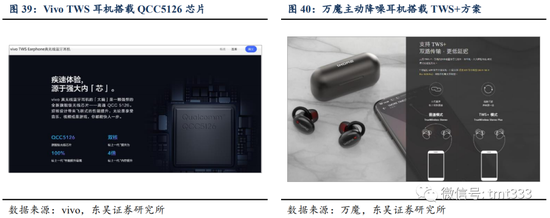 现阶段,高通TWS+方案和华为FreeBuds 3均突破了现有的蓝牙5.0技术,实现了左右双管通道传输。如果TWS+方案与华为蓝牙传输技术成为下一代蓝牙技术(蓝牙5.2或蓝牙6)的标准,或将打破苹果监听模式壁垒,进而导致非苹果TWS耳机渗透率增加,改变蓝牙芯片竞争格局。