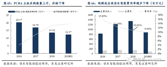 规模效应带来的成本优势:ODM/OEM 厂商凭借成本优势和专业积累为品牌商提供定制化服务,但大部分议价权在品牌厂商,因此对品牌厂商的销量程度、季节性以及产品定位有较大依赖,规模效应对 ODM/OEM 行业的生产成本及效率有着直接的决定因素。由于耳机产线所需的人力较多,人力成本上的规模效应并不明显。ODM/OEM 厂商的规模效应更多的体现在芯片、主板等采购上与管理、销售费用的分摊上。根据佳禾智能招股说明书数据,随着佳禾智能采购 PCBA(集成了蓝牙芯片的主板)数量的上升,采购成本显著的下降;随着佳禾智能的营收上升,整体费用较稳定,费用率逐年下降。