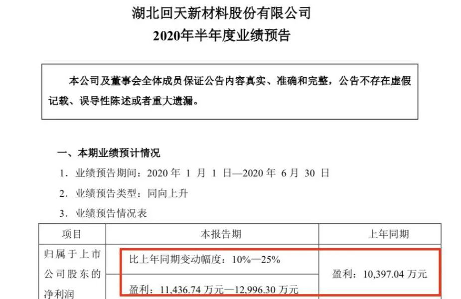 日前,回天新材发布2020年半年度业绩预告,较上年同期增幅为10%至25%。