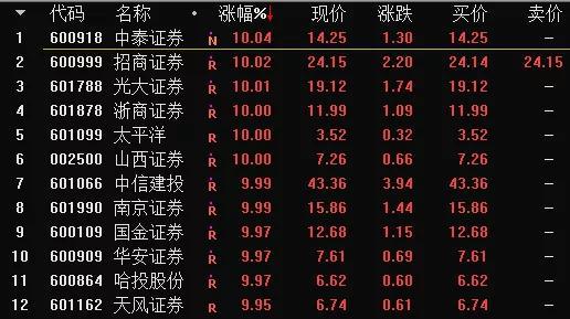 券商板块今日涨停个股