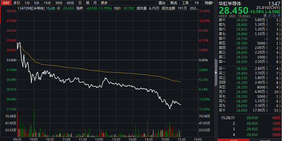 中芯国际的再度跳水拖累港股市场整个半导体板块集体走低,港股华虹半导体大跌近14%;上海复旦跌超10%,中电华大科技跌超4%。