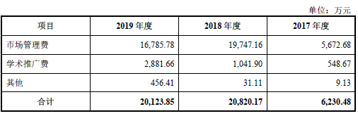 由于目前的主要经销方式不涉及推广服务,招股书中提到目前公司将市场推广的执行工作委托给原经销商或第三方医药推广公司,这也导致该公司2018年度销售费用较2017年增长近105%。2018年其营收增长1.71亿元,销售费用就增长1.49亿元,因此其利润不增反降。