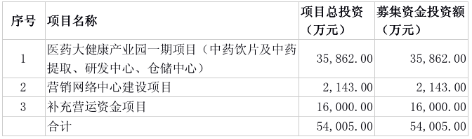 维康药业招股书批露的募集资金用途(2020年7月上会稿)