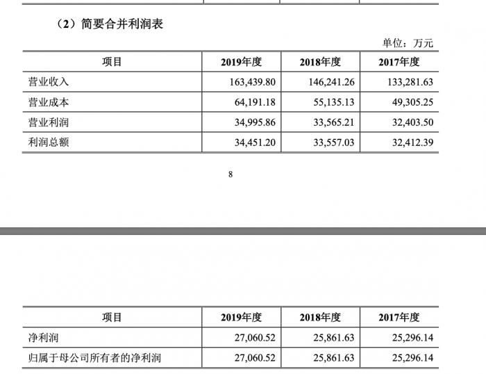 最近三年,金徽酒表现不俗:2017-2019年,金徽酒分别实现营业收入13.3亿元、14.6亿元和16.3亿元,分别实现归属于上市公司股东的净利润2.53亿元、2.59亿元和2.71亿元。