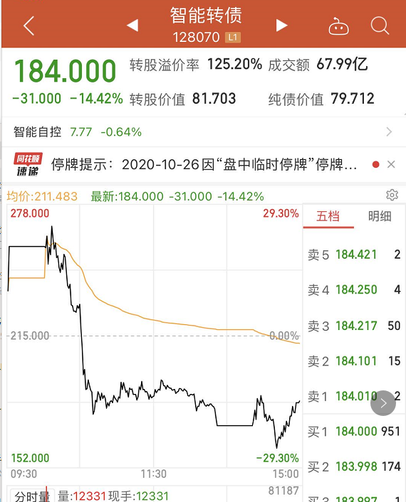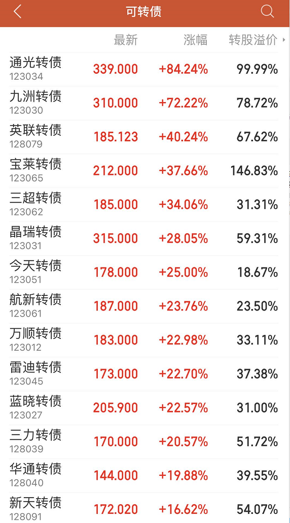 可转债延续“熔断潮”,逾30只转债临停,10只转债两度临停;智能转债上午涨临停下午跌临停。通光转债收涨逾84%,盘中一度涨近130%,九洲转债涨逾72%。