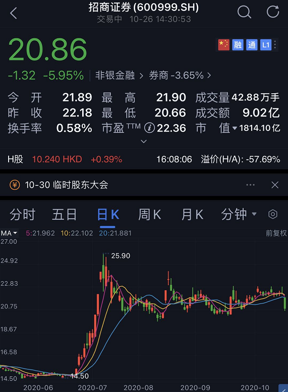 截至26日A股收盘,券商股的表现有点崩。光大证券一度跌停,浙商证券跌近8%,中银证券跌超6%,招商证券、中信建投、第一创业跌超5%。