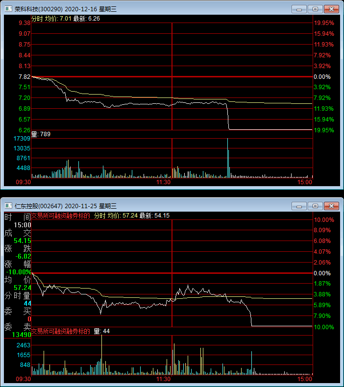 包括开启第二波杀跌的仁东控股在内,早盘共有6只股票 “一字跌停”,分别是仁东控股、荣科科技、兴业科技、奇信股份、永和智控和济民制药。其中,创业板的荣科科技已连续两日遭遇幅度20%的跌停。