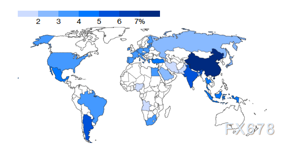 预计新兴和发展中经济体GDP今年将增长5%,明年将增长4.2%,很大程度上受到疫情被基本控制的中国经济的提振。如果剔除中国这个世界第二大经济体,由于疫情继续给消费和投资带来压力,预计剩余国家今明两年的经济增长将分别仅为3.4%和3.6%。下图为2021年GDP预测: