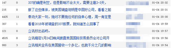 财联社1月24日讯,针对近日外界关注的美国337调查事件,苹果产业链大白马立讯精密公告称,该调查对公司目前的生产经营不会造成实质性影响。不过,对于周一该公司的股价走势,一众股民的观点却出现较大的分歧。