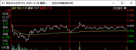 12月28日当日,京东方A股价波动不大,早盘小幅下探后回升后全天维持微幅震荡,收跌0.35%。