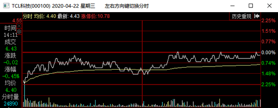 4月22日当日,TCL科技低开逾2个点,不过股价有所回升,最终收跌0.22%。