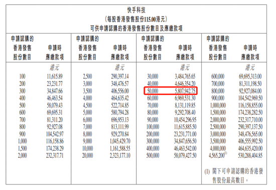 不过,在快手招股中,却出现了各种状况。首先,公司本次发售3.65亿股,其中仅2.5%在港公开发售,发售额度913.05万股,被市场认为“看不起”散户。但随着,快手招股火热,首日孖展就超过了3000亿,超购287倍,从而触发回拨机制,公开发售占比将扩大至6%,香港公开发售股份总数将增至约2191.32万股。