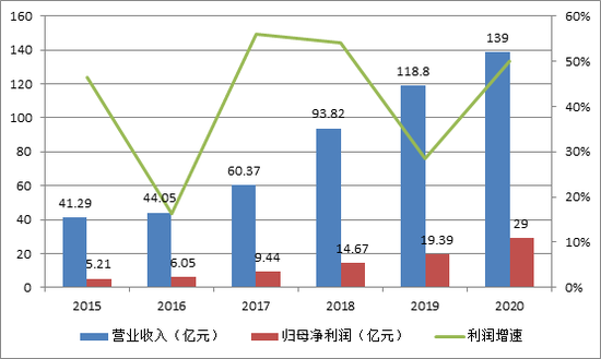 自2017年底以来,山西汾酒的营收由2017的60.37亿元增长至2020约139亿元,3年增长1倍多,2018年起业绩有明显的加速迹象。归母净利润也从2017年的9.44亿元,增长至2020年约29亿元,3年增长2倍,增速较2015-2017明显加快。