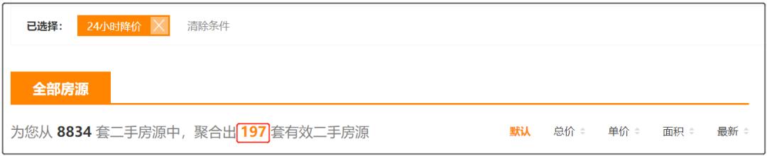 我在诸葛找房(其包含了贝壳、乐有家等平台数据)上发现,8834 套有效二手房源中,其中24小时降价房源,就有197套之多。